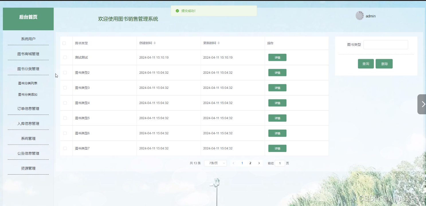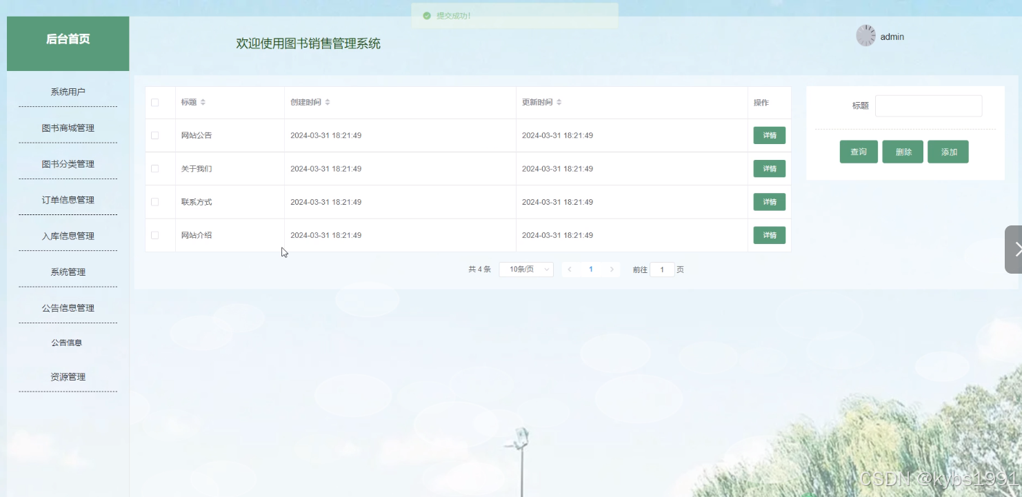 Keywords:JAVA; SpringBoot; Book sales management system; Vue