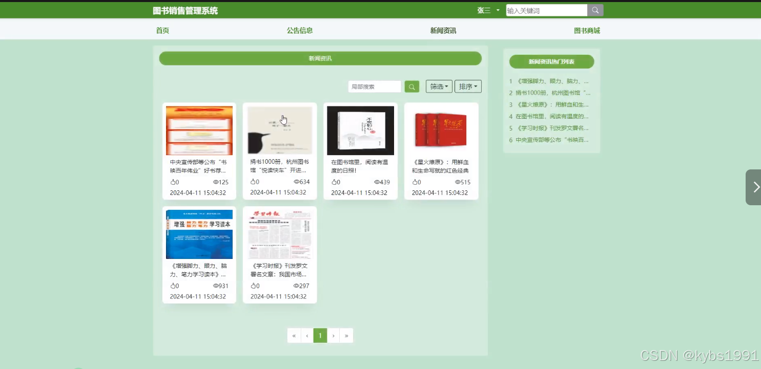 首页:展示系统的入口,让用户快速导航到所需功能,如公告消息、新闻资讯、图书商城等。