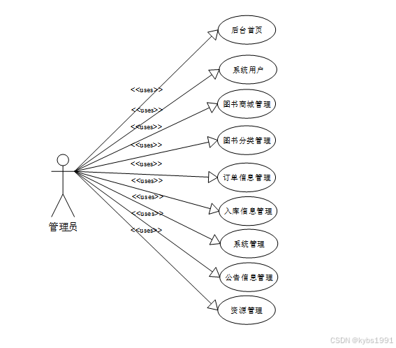 系统设计的目的是分析系统包括的所有功能结构,为开发人员设计开发和实现系统做好准备工作。经过前期的需求调查、分析和整理之后,确定的总体需求主要包括多个模块,分别是:后台首页、系统用户、图书商城管理、图书分类管理、订单信息管理、入库信息管理、系统管理、公告信息管理、资源管理。系统整体角色分为两个部分,一是普通用户、二是管理员。权限分布也是很明显,管理员可以实现对用户的增加以及删除,是最高权限拥有者。