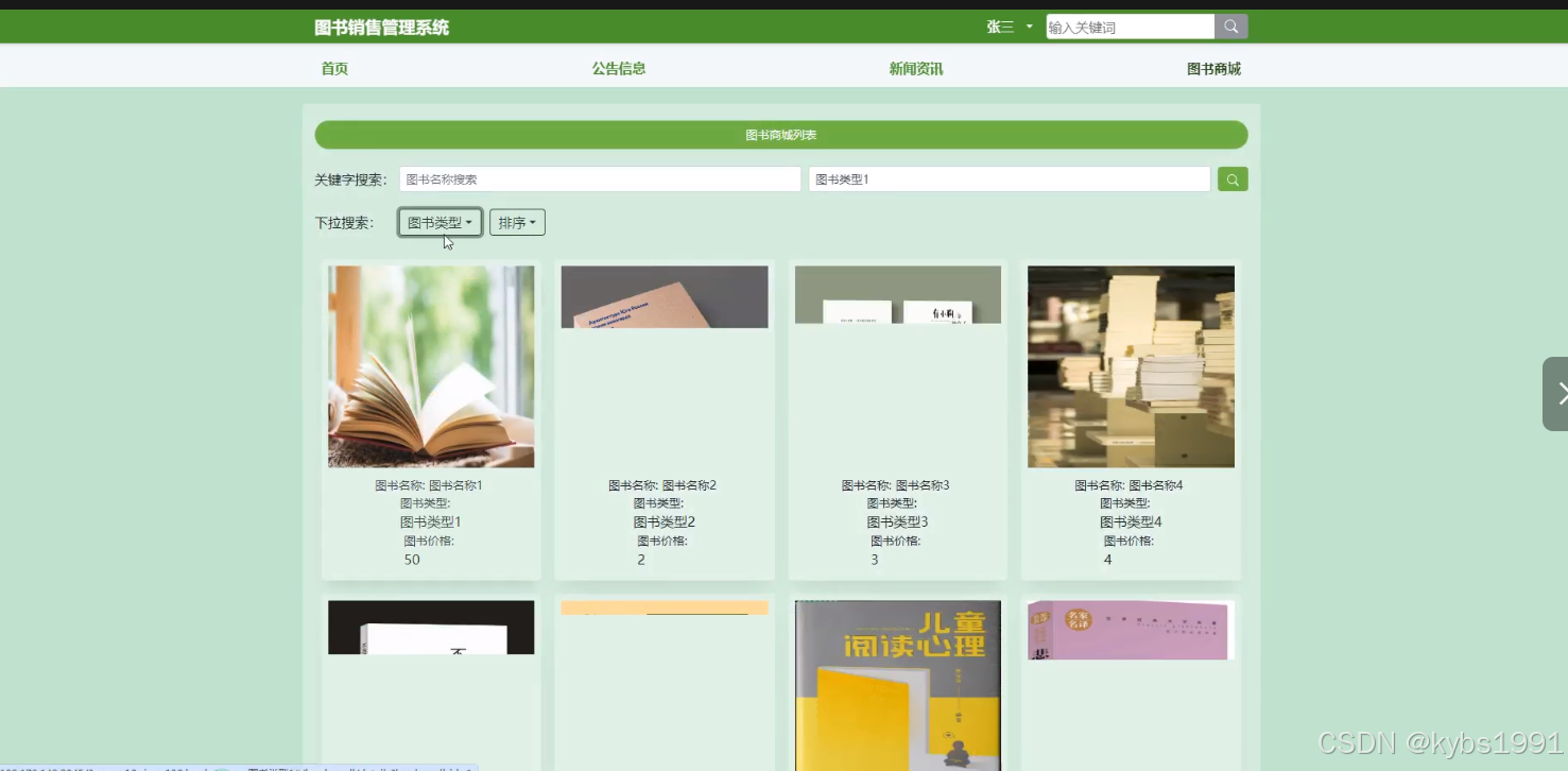 用户可以浏览和购买图书,包括图书名称、图书类型、图书价格、图书详情等、可以下单购买、点赞和收藏。图书商城界面如下图5-6所示。