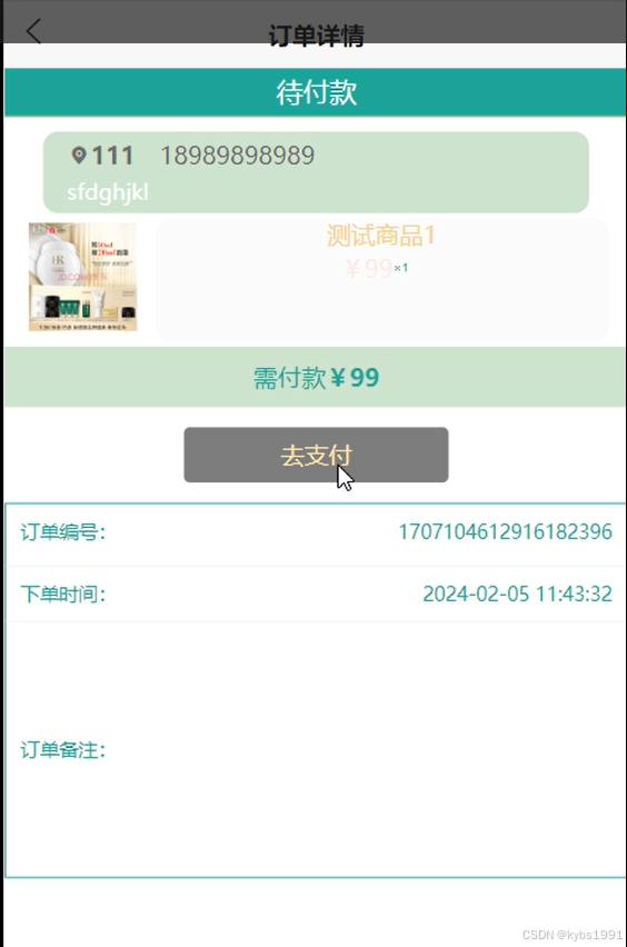 (9)订单:用户可查看在化妆品商城里的所有订单(待付款、已付款)进行管理。
