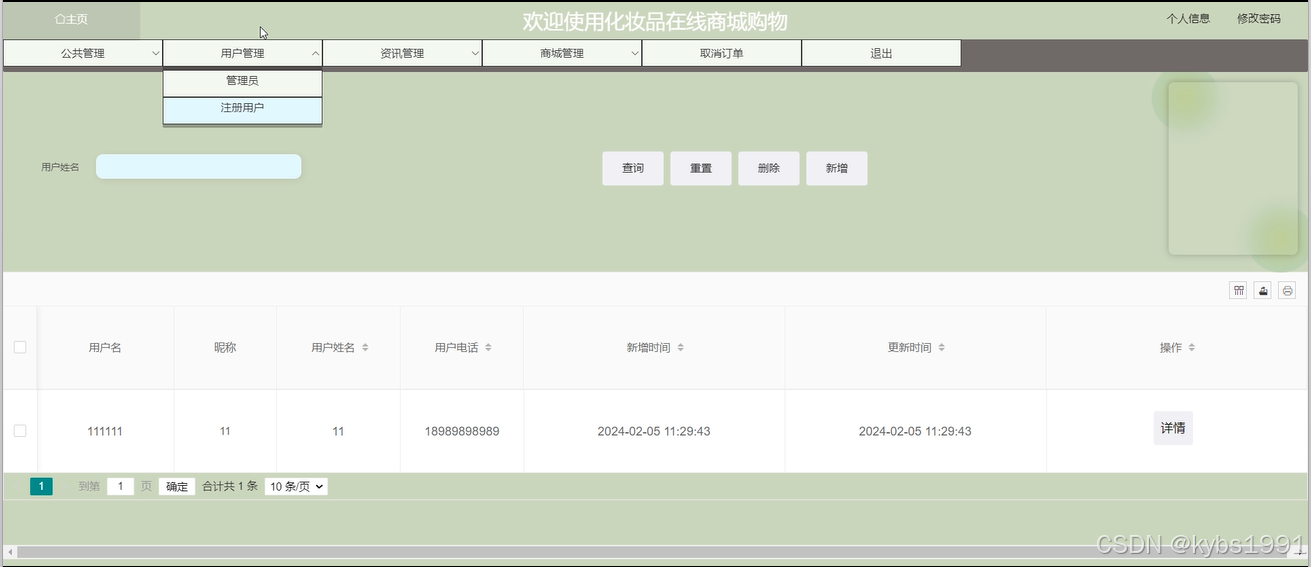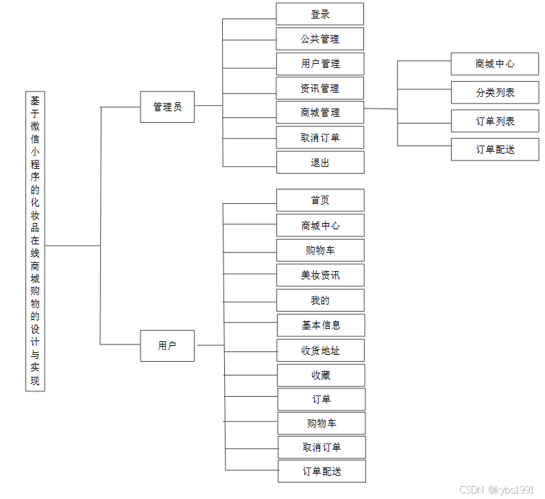 按照化妆品在线商城购物的角色,我划分为了用户管理模块和管理员管理模块这两大部分。