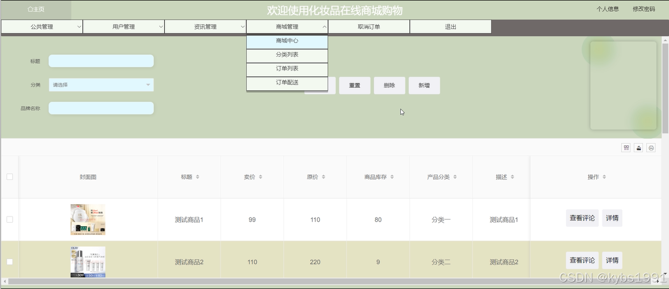 | 目的 | 测试化妆品查看功能 |