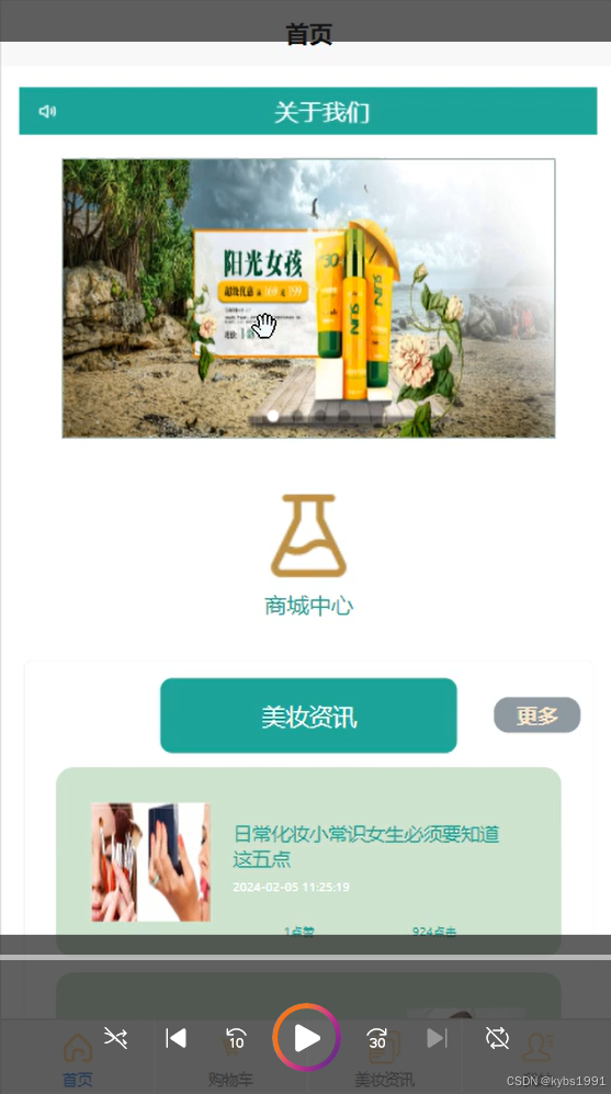 (5)美妆资讯:用户在这一菜单里可以查看管理员在后台发布的商城各类化妆品和护肤等的美妆资讯信息内容,对资讯进行点赞+评论+发布文章点评。