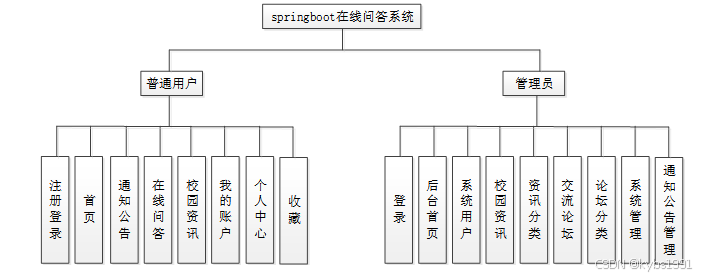 在线问答系统从角色上划分为了注册用户以及管理员两种角色。