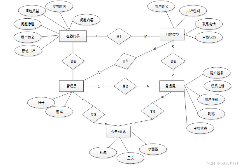 图3.2 在线问答系统总E-R关系图
