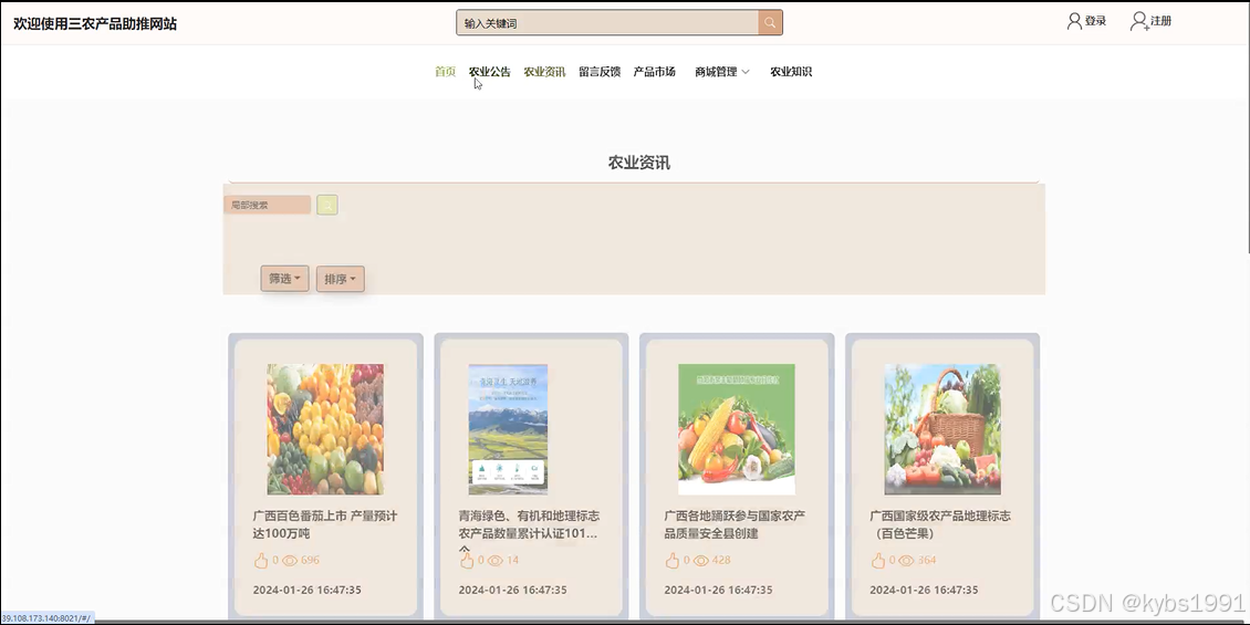 农业资讯: 展示农业领域的新闻和资讯内容,方便用户了解行业动态。