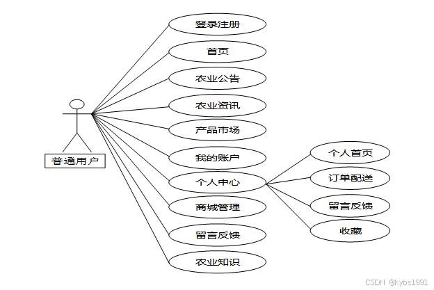 按照基于SSM的三农产品助推网站的角色,网站划分为了普通用户模块和管理员模块这两大部分。在设计和实现基于Spring Boot的三农产品助推网站时,我们需要充分考虑普通用户和管理员的不同需求,以确保网站能够满足各类用户的功能要求。以下是针对不同用户角色的功能分析: