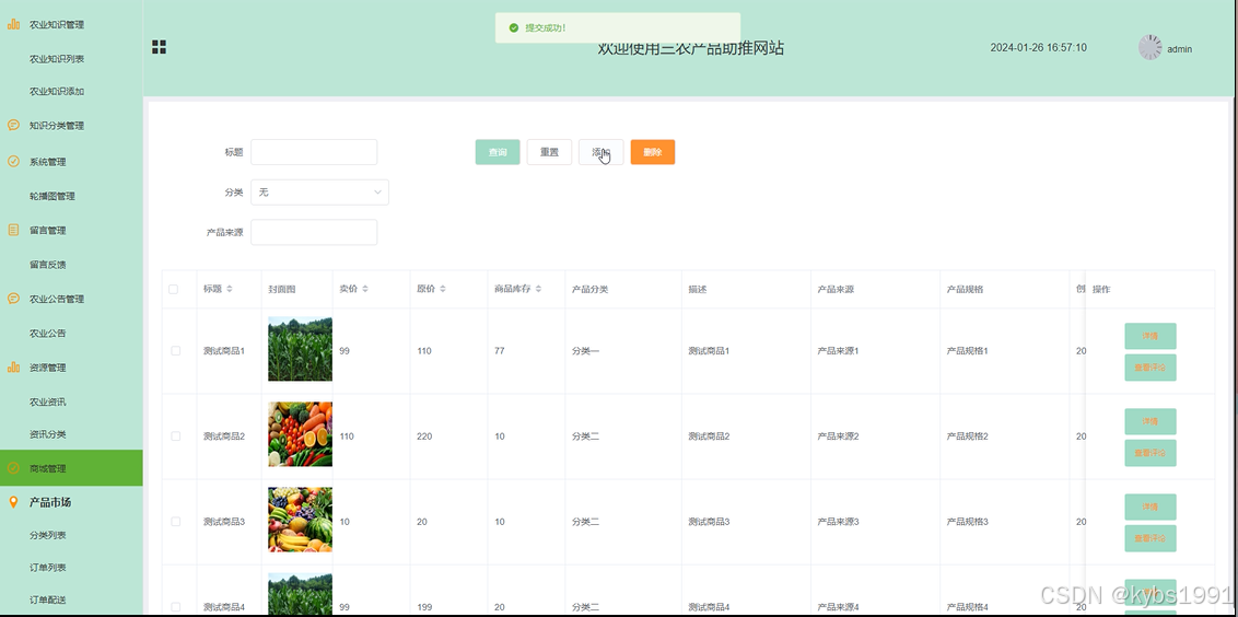 | 预期结果 | 提交以后,页面会显示新的三农产品商品信息 |