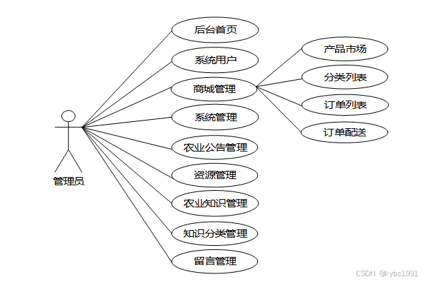 管理员是维护整个基于SSM的三农产品助推网站中所有数据信息的。管理员角色用例如图2-4所示。