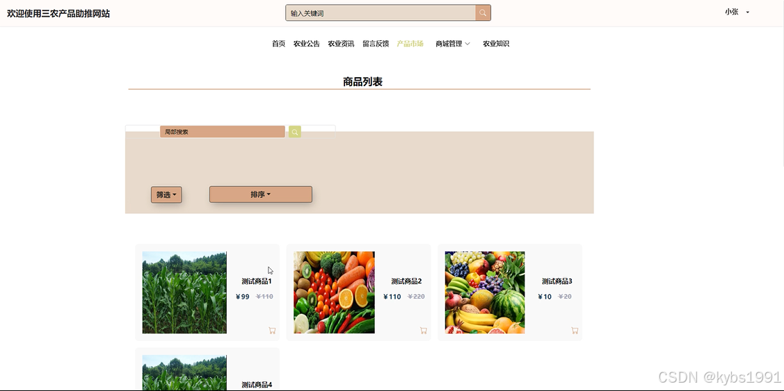 首页: 展示农产品市场、农业公告、农业资讯等内容,吸引用户关注。