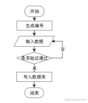 用户成功登入系统后就能够实现增加数据的操作,增加数据的编号由系统生成,用户不能随意填写,除了编号以外,其他增加信息用户自己填写,填写后的信息经过系统验证,验证通过后即可完成数据新增,数据新增的流程图如下图2-4所示。