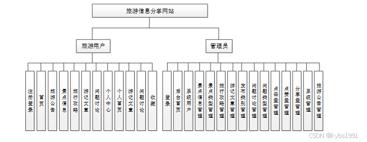 旅游信息分享网站我划分为了用户管理模块和管理员模块这两大部分。