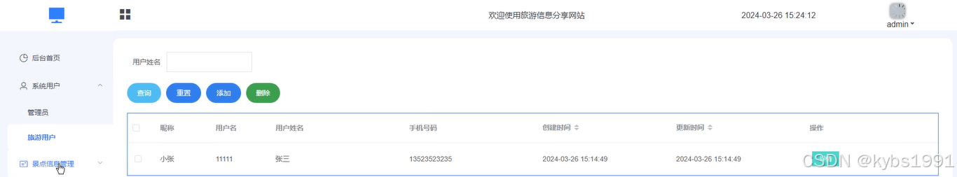 (2)系统用户:管理员点击可查看管理员和注册用户,同时可对系统用户进行增删改查。
