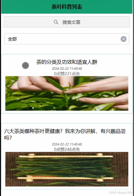 茶叶科普:茶叶科普:用户点击可查看茶叶科普列表,同时可对科普文章进行点赞、收藏和评论。界面图如下。