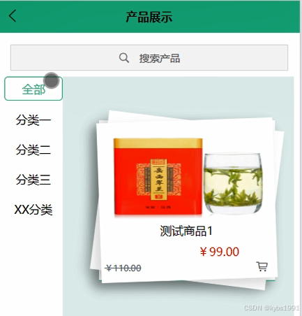茶叶商城:用户点击可通过选择分类进行查看茶叶产品图片详情,同时可对产品进行收藏、评论和加购操作。面如下图所示。