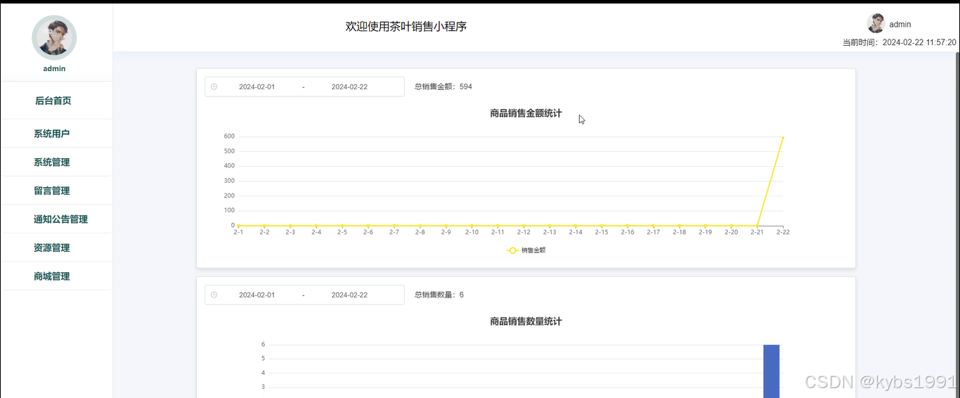 (2)后台首页:管理员点击可查看商品销售金额和销售数量的数据统计图。