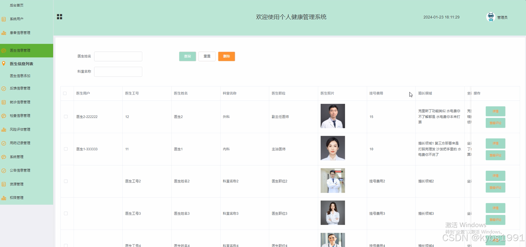 4.2.3医生信息管理界面