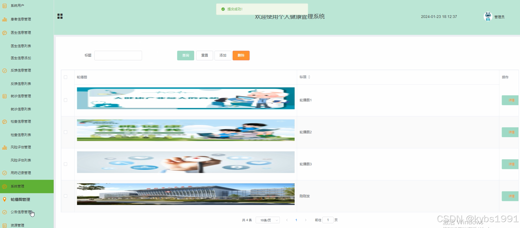 (2)系统管理:管理员点击“系统管理”菜单可以对首页展示的轮播图进行增删改查。