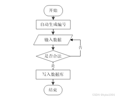 用户成功登入系统后就能够实现增加数据的操作,增加数据的编号是特定的,系统生成,用户不能随意填写,除了编号以外,其他增加信息用户自己填写,填写后的信息经过系统验证,验证合法通过就显示增加数据成功了,相反的话,就没有增加成功,图2-1显示的就是在增加数据时的流程。