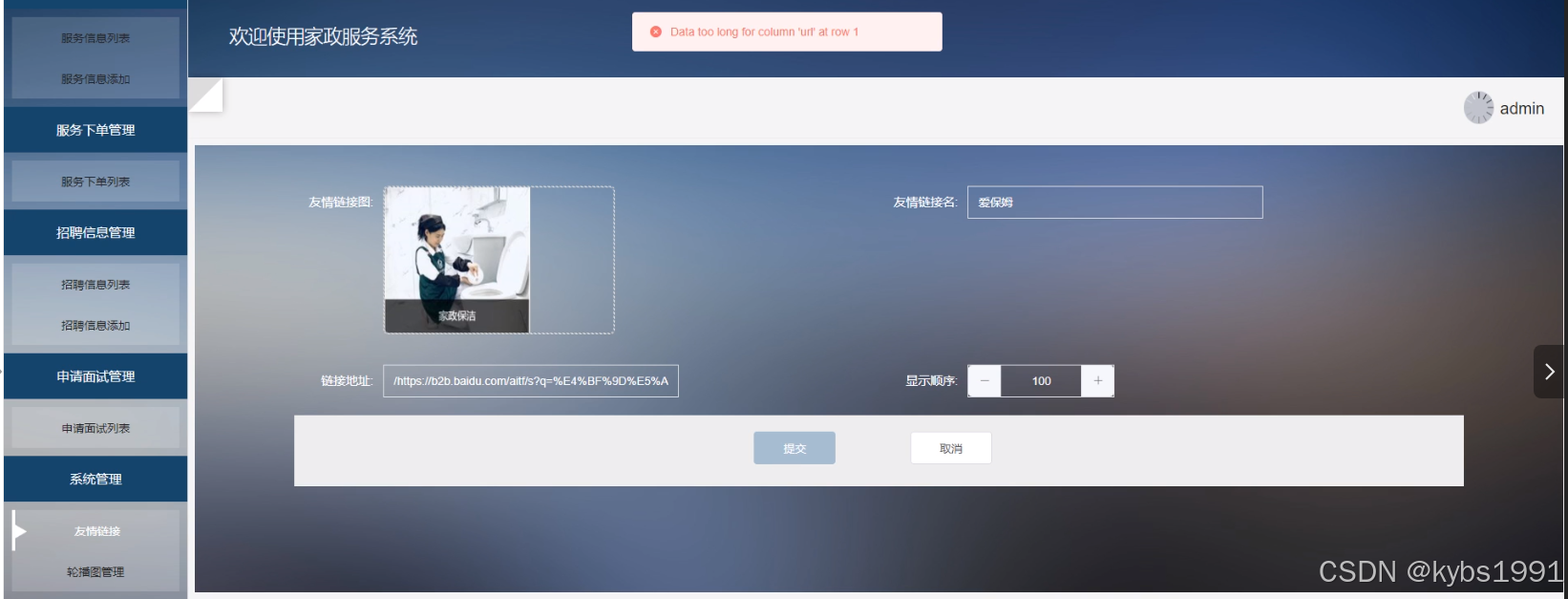 7) 系统管理:管理员可以对友情链接和轮播图进行查询、添加和删除操作。