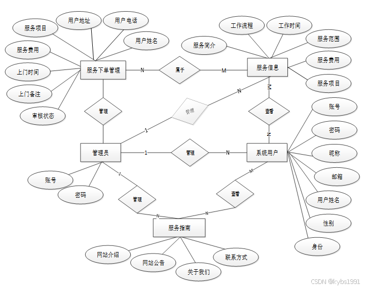 下面是整个家政服务系统中主要的数据库表总E-R实体关系图。
