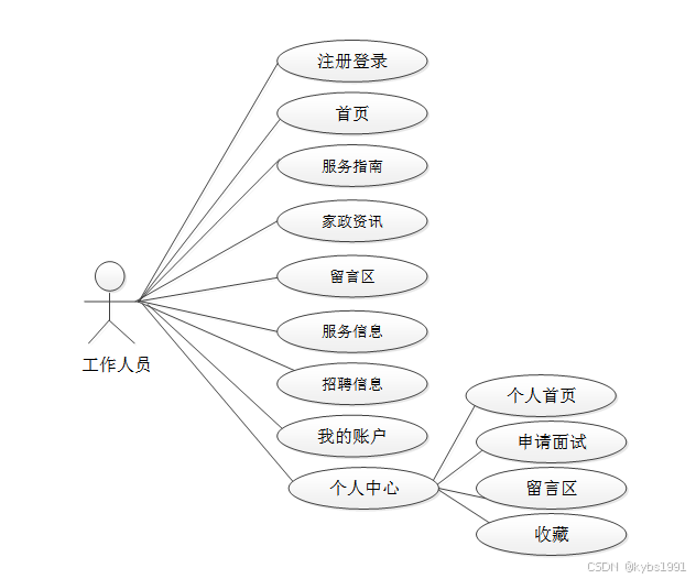 通过2.3功能的分析,得出了本家政服务系统的用例图: