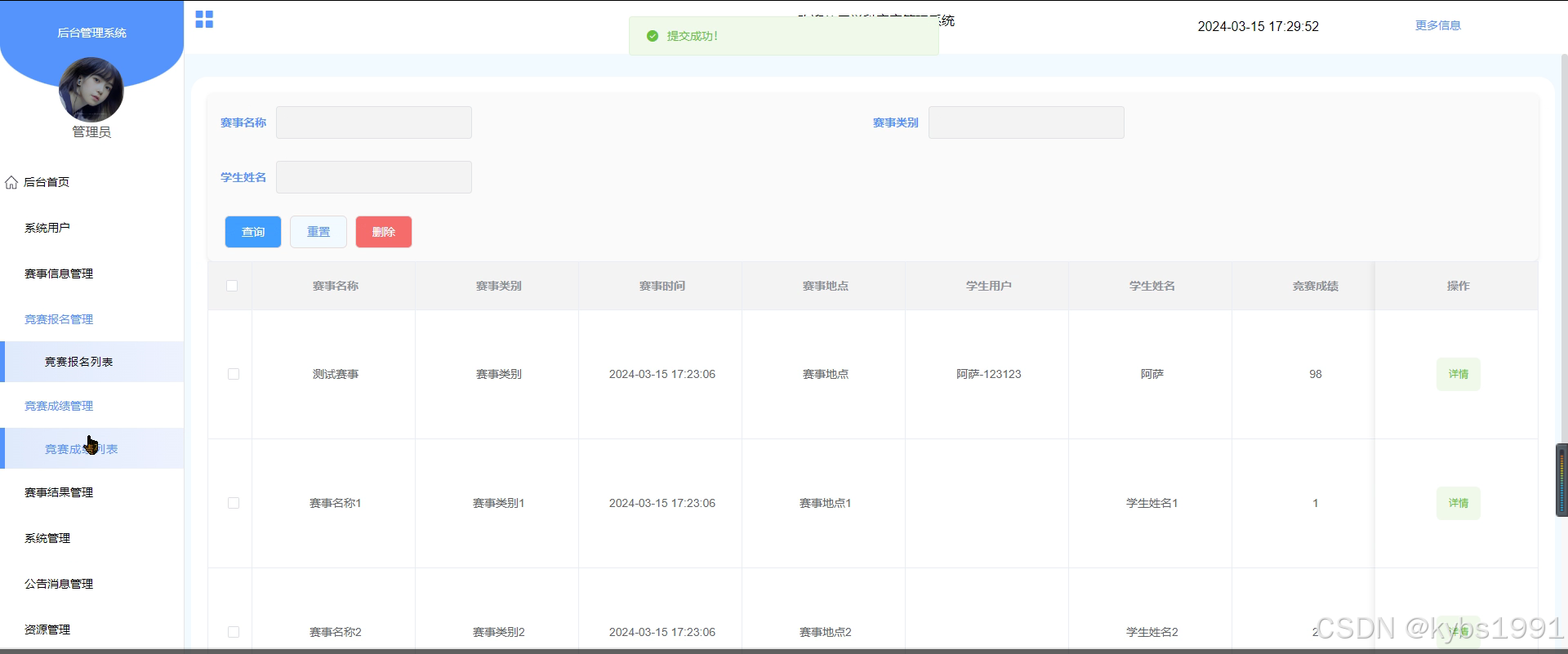 (2)学科竞赛管理系统中的web后台管理中的前端使用的是bootstrap框架,它配合ajax和jquery可以美化页面设计。
