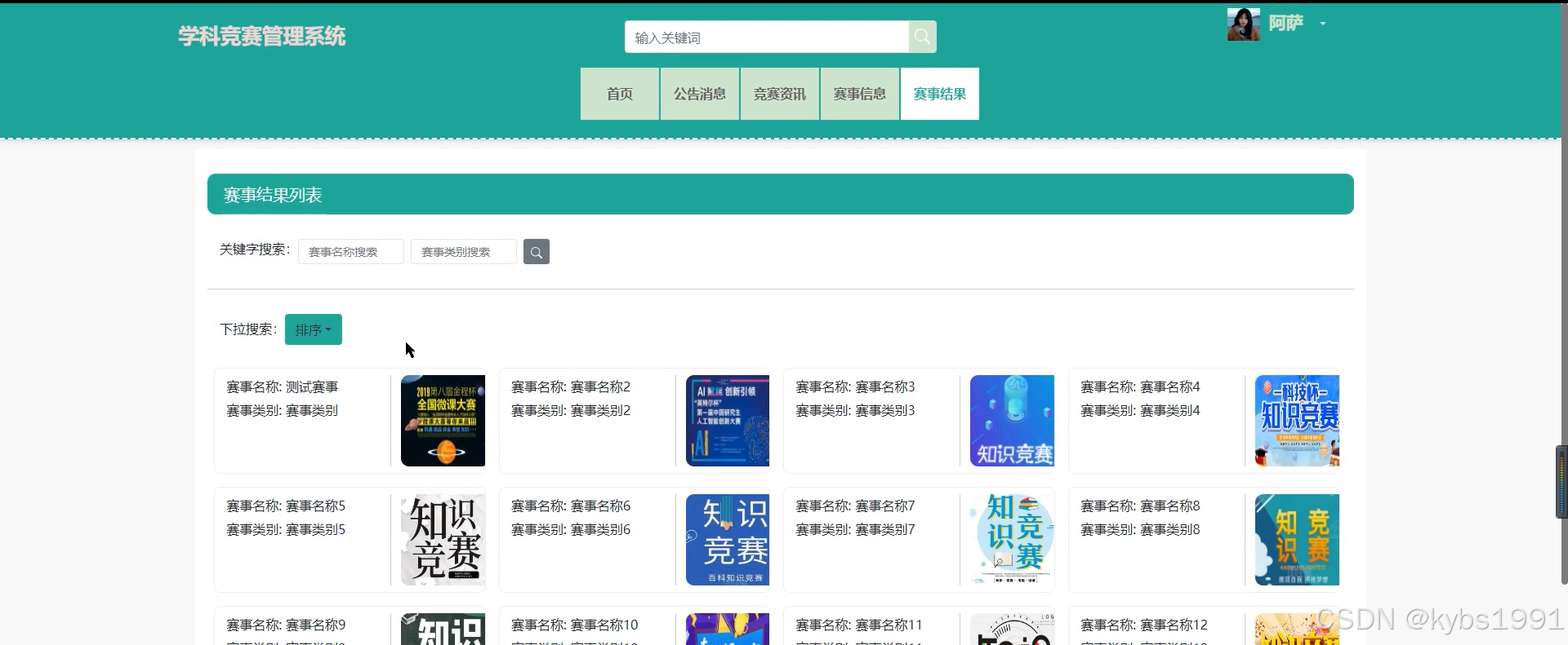 点击“竞赛结果”可以查看竞赛结果列表。界面如下图4.6所示。