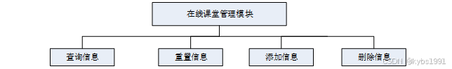 在线课堂管理模块是本系统中的重要功能之一。该模块的设计旨在提供对在线课堂信息的发布、编辑、删除和查看等管理功能,以便及时、准确地向学生用户发布相关的在线课堂信息等。其模块功能结构,具体的结构图如下: