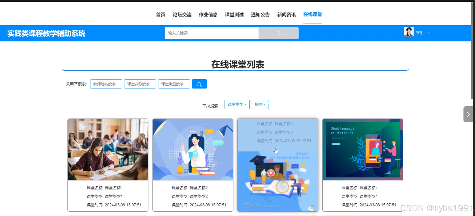 | TC001 | 打开在线课堂页面,检查是否能够正确展示在线课堂列表信息 | 在线课堂列表显示正确 | 在线课堂列表显示正确 | 通过 |