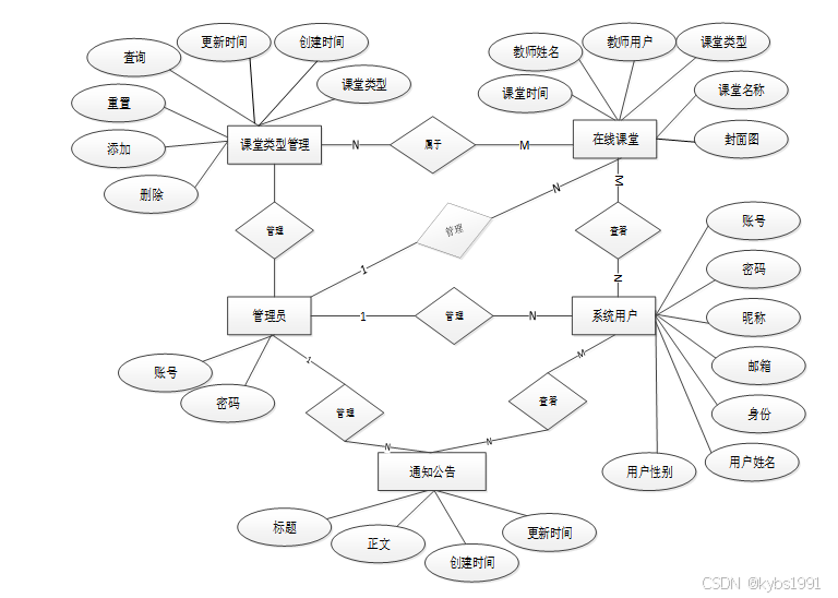 - 在线课堂管理:管理员可以查看在线课堂列表中某一课堂的详情和评论信息,可以对在线课堂信息进行查询、重置、添加和删除操作。