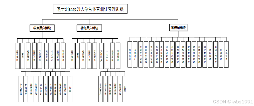 按照基于django的大学生体育测评管理系统的角色,系统划分为了学生用户模块、教师用户模块和管理员模块这三大部分。在设计和实现基于Spring Boot的大学生体育测评管理系统时,我们需要充分考虑学生用户、教师用户和管理员的不同需求,以确保系统能够满足各类用户的功能要求。以下是针对不同用户角色的功能分析: