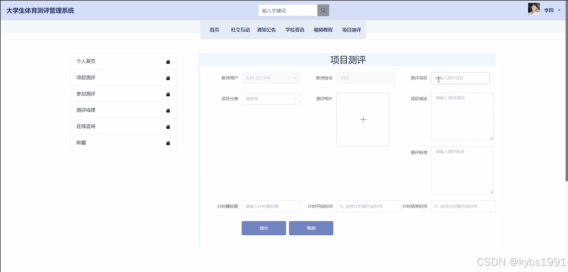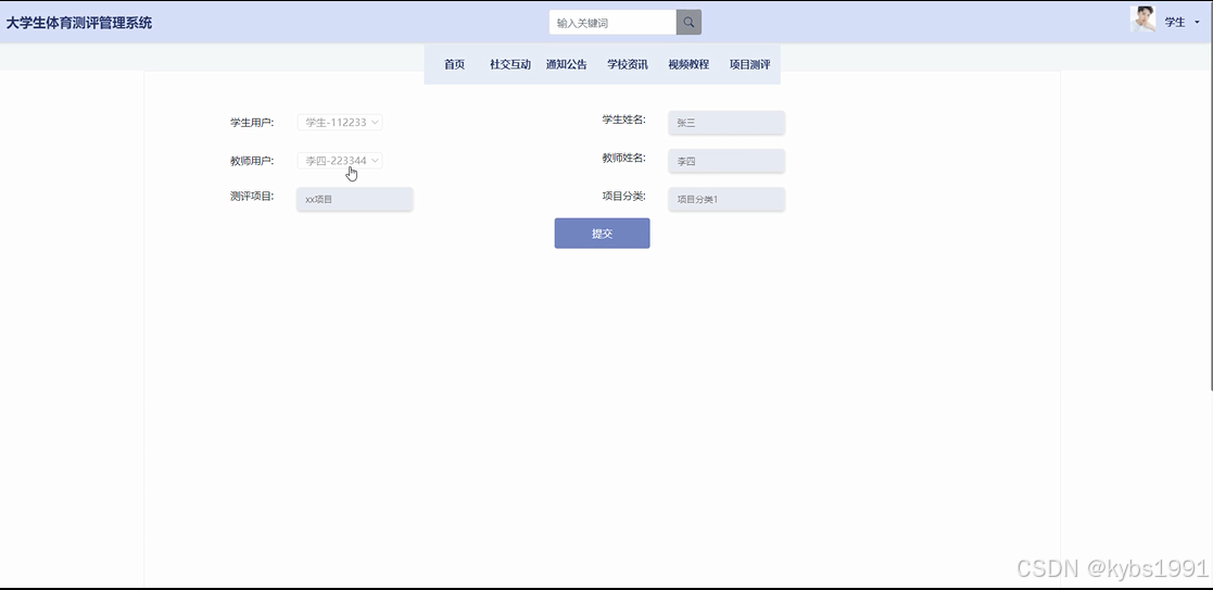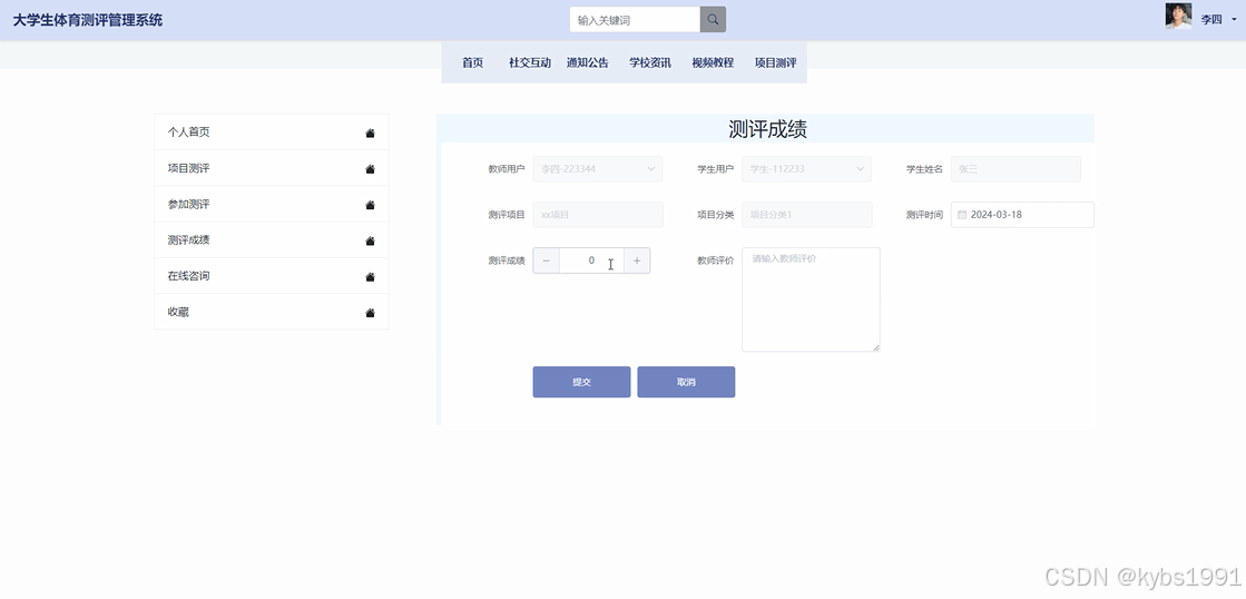项目测评: 教师用户可以管理体育项目的测评活动。