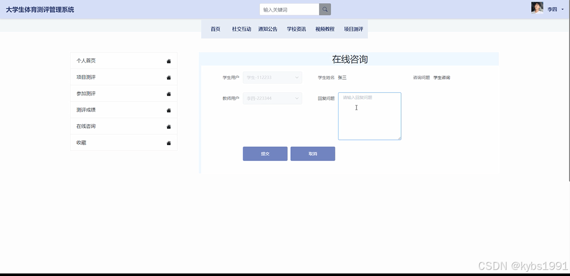 在线咨询: 教师用户可以回复学生的在线咨询问题。