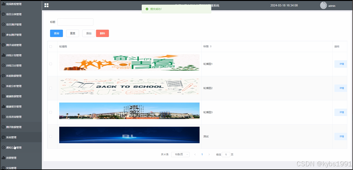 管理员点击“系统管理”这一菜单会显示轮播图这一个子菜单,管理员可以对前台展示的轮播图进行设置,界面如下图4-14所示。