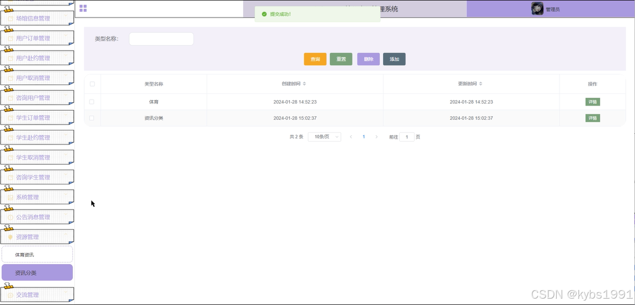 (14)资源管理:管理员负责管理体育资讯和资讯分类,包括增删改查、查看详情和搜索功能,以便及时更新和管理相关资讯内容。