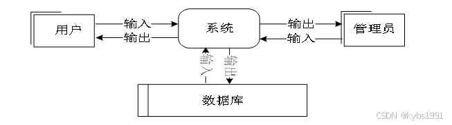 如下为系统的顶层数据流图,外部实体有用户和管理员,分别对系统输入数据,从而得到要输出的数据。