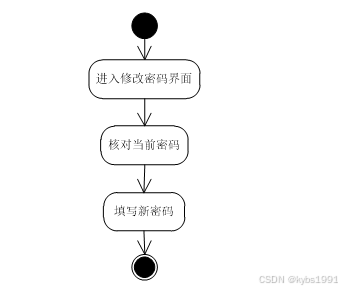用户功能界面可对自己的密码进行修改。进入修改密码界面后核对当前密码,核对成功后填写新密码。修改密码活动图如下图所示。