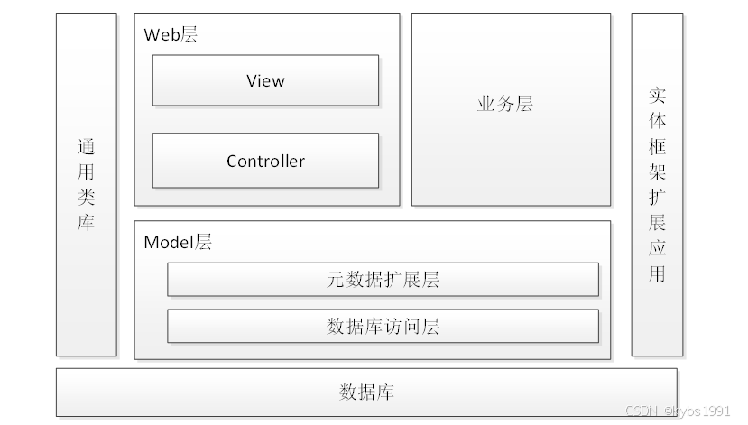 本系统架构设计主要分为可以3层,主要有Web层,业务层,Model层。其中web层还包括View层和Controller层,Model层包括元数据扩展层和数据访问层。