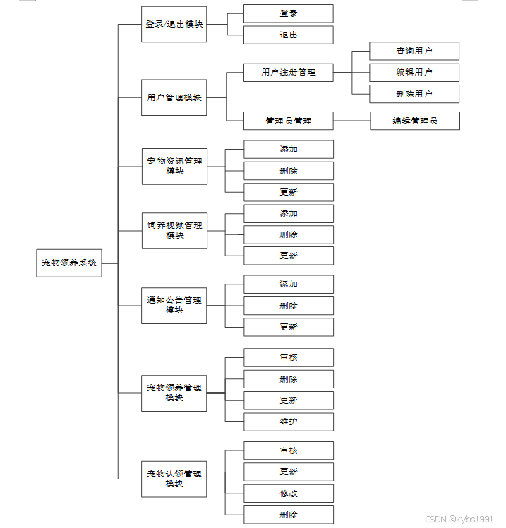 宠物领养系统主要是为了更加地完善宠物领养的服务情况,对用户的信息、宠物信息、宠物领养、宠物转让等提供了方便的机制。本系统有多类使用者,分别是用户注册 管理员和商家。以下分别从用户和管理这两种角度介绍本系统所要实现的功能。