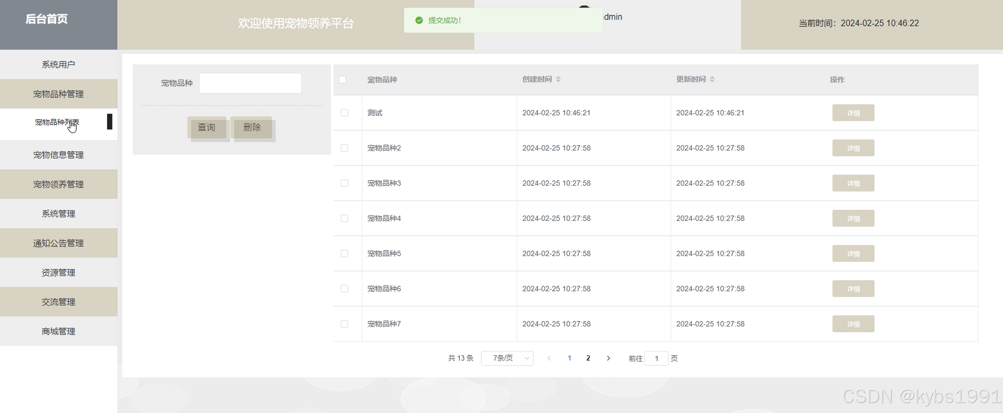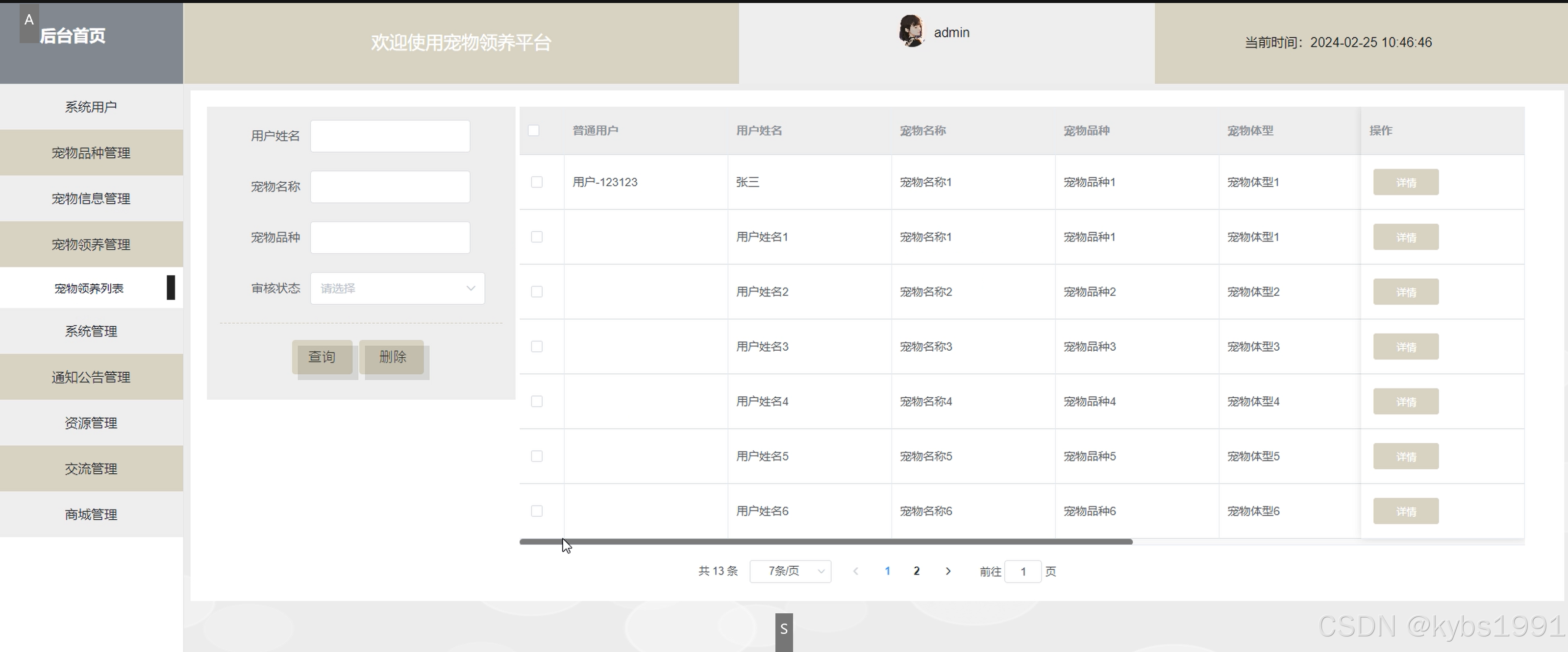 宠物领养管理界面如下图所示。