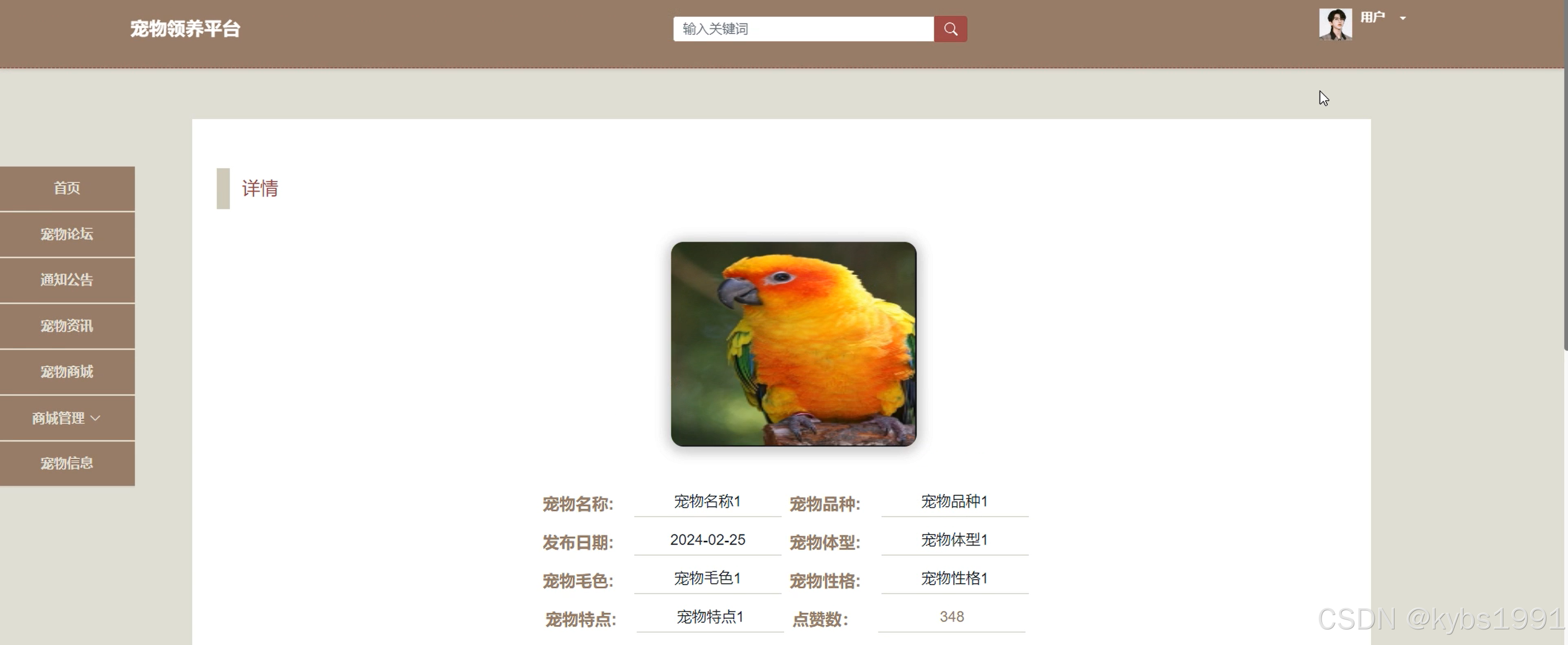 饲养视频:用户登录系统后可以点击饲养视频了解各类宠物的饲养细则;