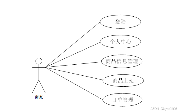 2.商家主要使用系统进行上商品上架以及订单管理和订单处理,下图所示为商家的用例。