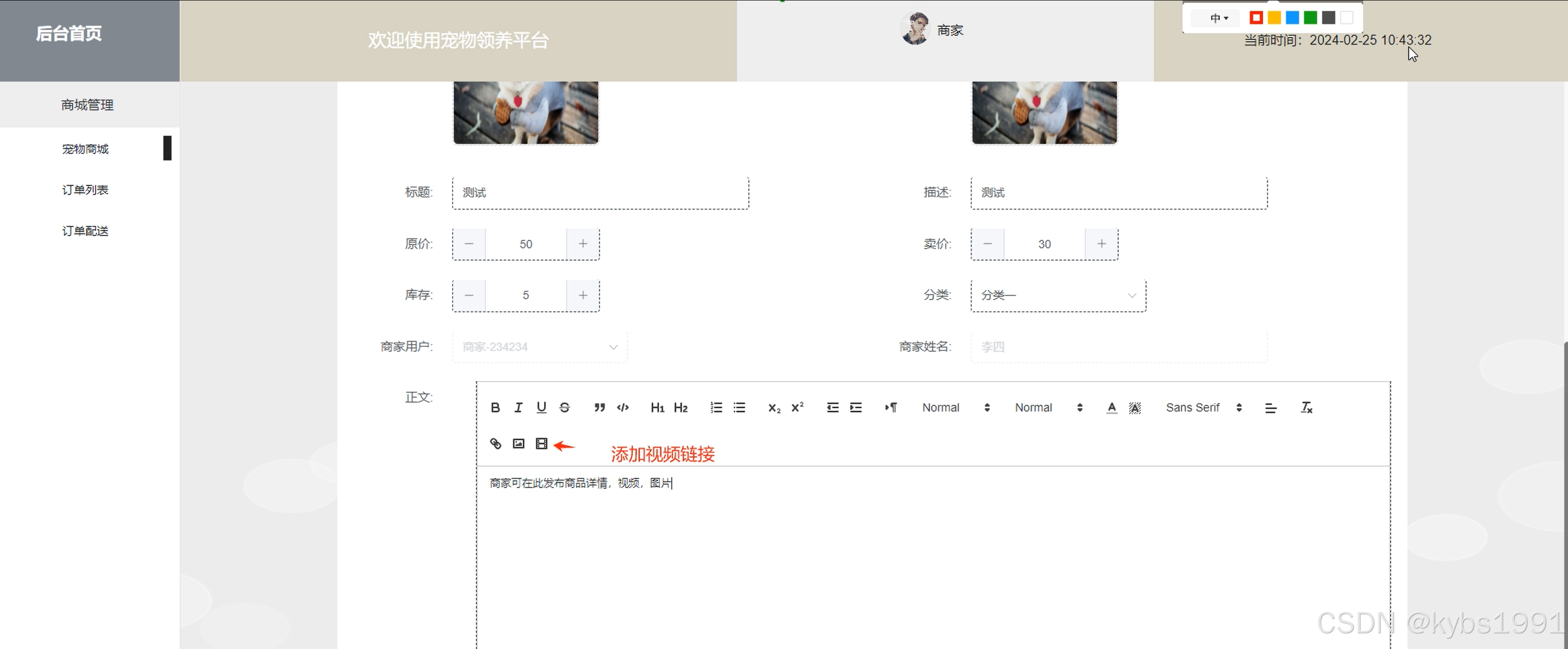 饲养视频管理:发布管理宠物饲养视频;