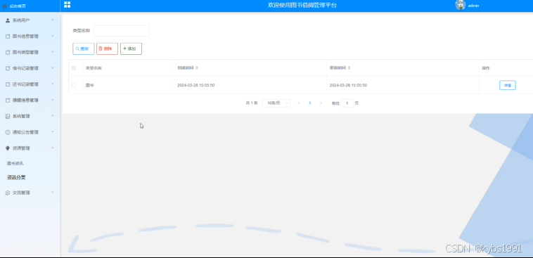 图书类型管理:管理员可以管理图书类型,包括添加新的图书类型、编辑现有类型等,以便更好地分类和展示图书资源。