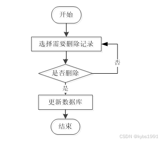 管理员可以对通知公告、超市资讯、超市中心商品列表等进行信息的删除,对要删除的信息进行选中后,点击删除按钮,系统会询问是否确定,若点击确定,则系统会删除掉选中的信息,并在数据库内对信息进行删除,删除信息流程图如图2-6所示。