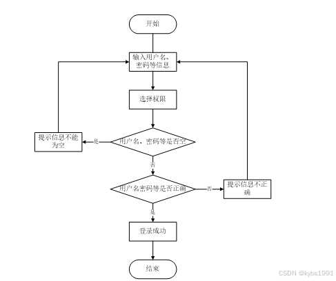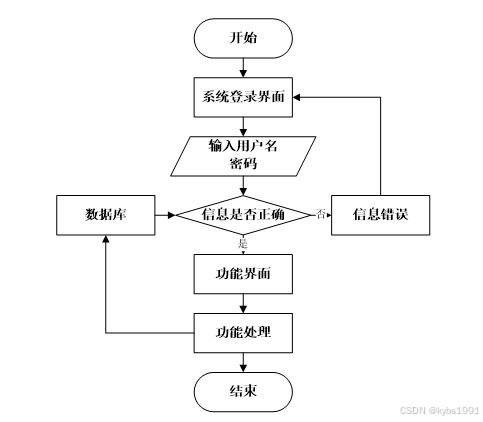 用户打开并进入系统后,会先显示登录界面,输入正确的用户名和密码,系统自动检测信息,若信息无误,则用户会进入系统功能界面,进行操作,否则会提示错误无法登录,操作流程如图2-3所示。