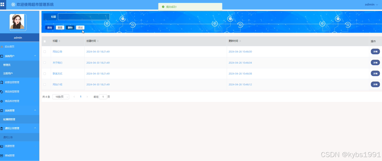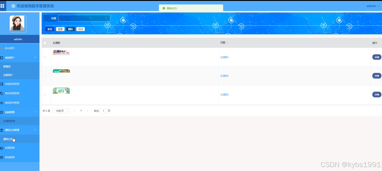 轮播图管理:管理员可以管理系统首页的轮播图信息,包括添加、编辑和删除轮播图内容。