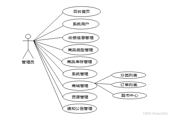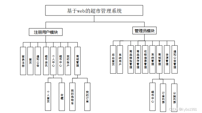 按照基于web的超市管理系统的角色,我划分为了注册用户模块和管理员模块这两大部分。